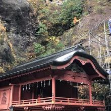 本殿のすぐそば、山の岩沿いの見晴らしのよい場所に建てられていました。