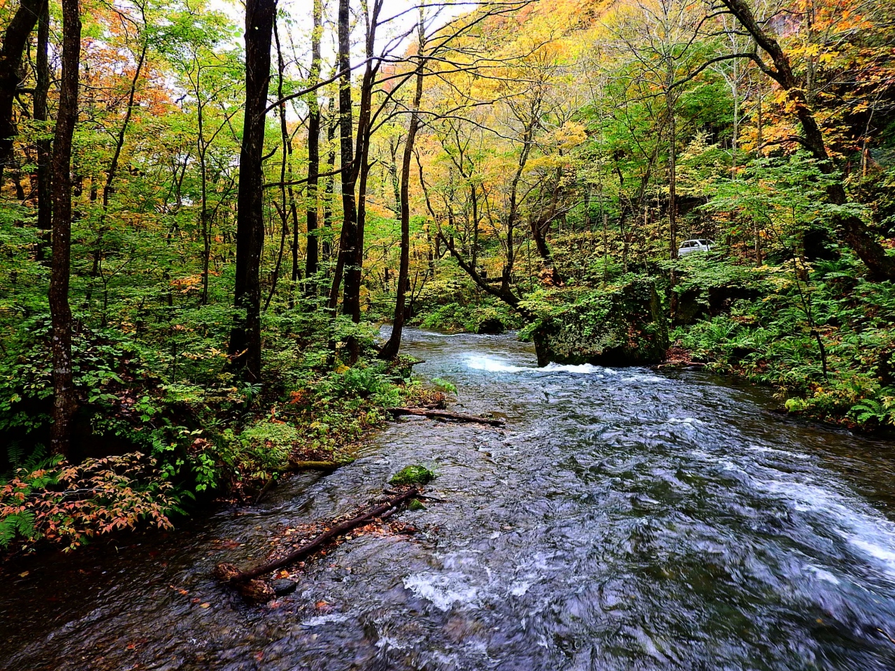 奥入瀬渓流は何と言っても紅葉と初夏が一番の見頃だと思います.今回訪れたのは10月下旬の土曜日で,天候は曇りでしたが観光バスや個人・団体の外国人観光客が大勢来ていました.景色だけで見れば奥入瀬渓流以外にも見事な紅葉の場所は他にも沢山あると思いますが,これだけ観光客が集まるのはやはりネームバリューのせいでしょうか?