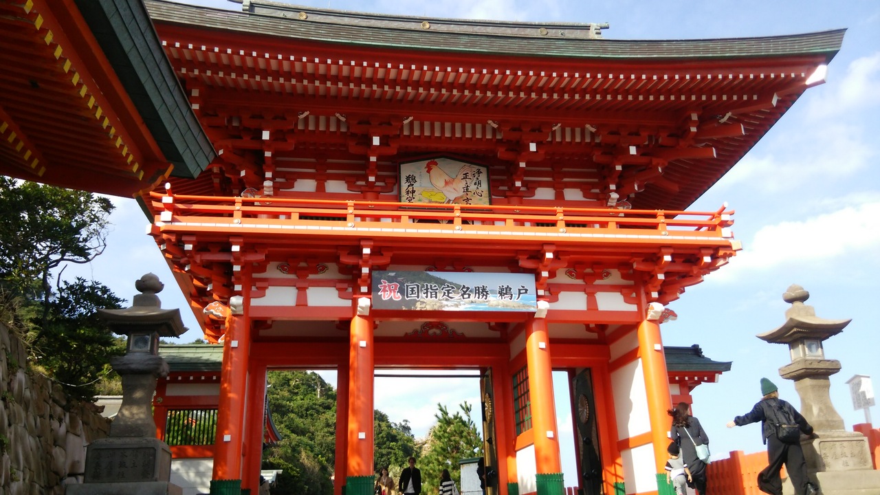 青島方面からレンタカーで行きましたが、あいにく台風で道路が通行止めなので迂回しました。境内に着くと朱色の建物がまるで竜宮城のようでした。奥のほうに進むと岩の中に本殿がありました。まるで秘密基地です。100円で素焼きの玉をもらって綱の中にいれる運試しが楽しかったです。行く価値ありです。