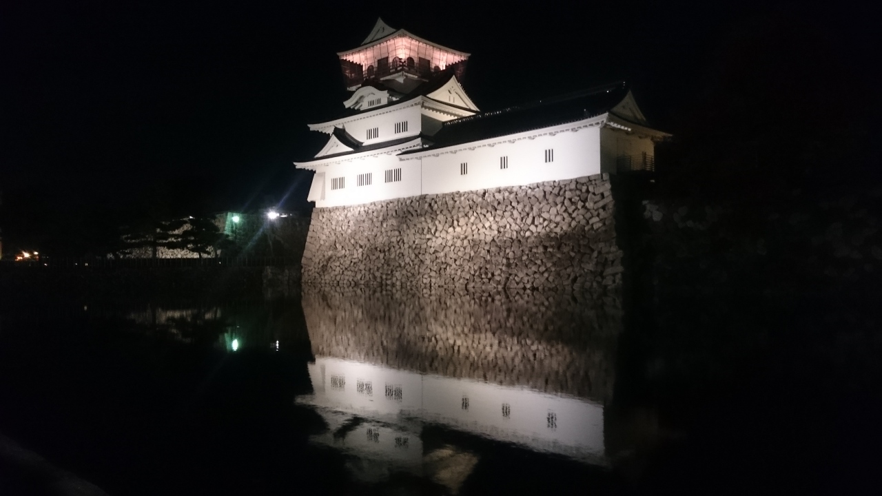 夜はライトアップされていて、お堀に映る姿も綺麗でした。