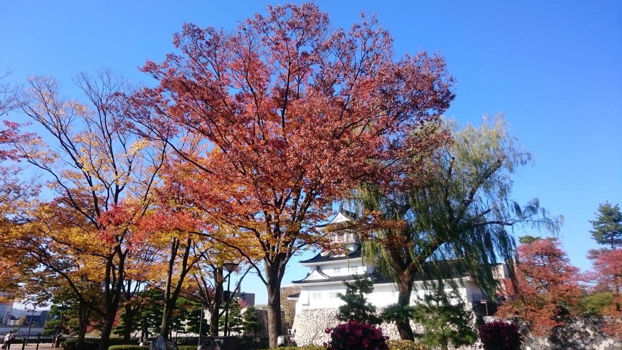 富山市中心部の真ん中にあります。芝生が広がった快適な公園で、都心のオアシスといった感じです。富山城を中心に、お堀の傍にはオブジェなどもあって、散策にちょうどいいです。夜の富山城のライトアップも綺麗でした。