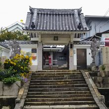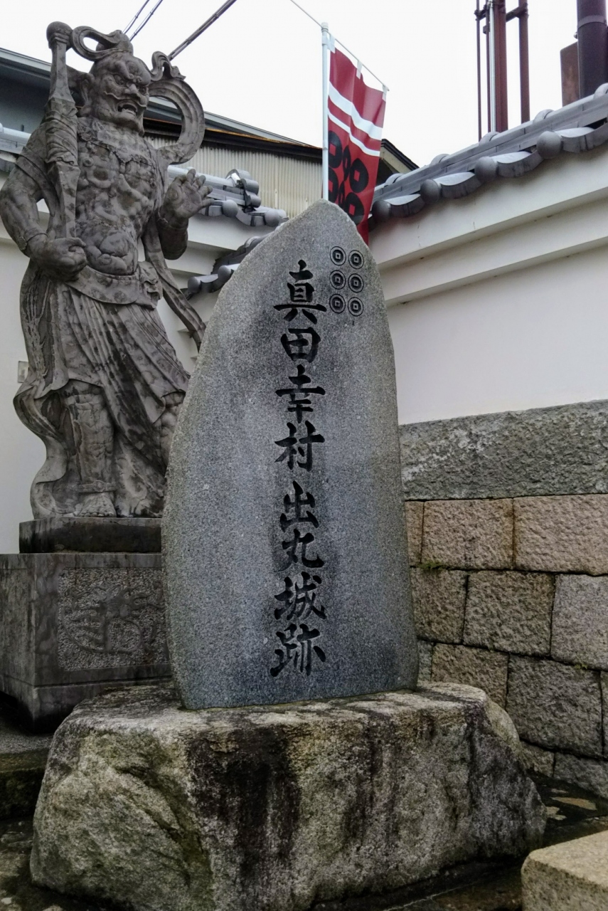 この辺りは坂道で、お寺にも石段があり、その途中に「真田幸村出丸城跡」の石碑が、六文銭の幟と共に建っていました。