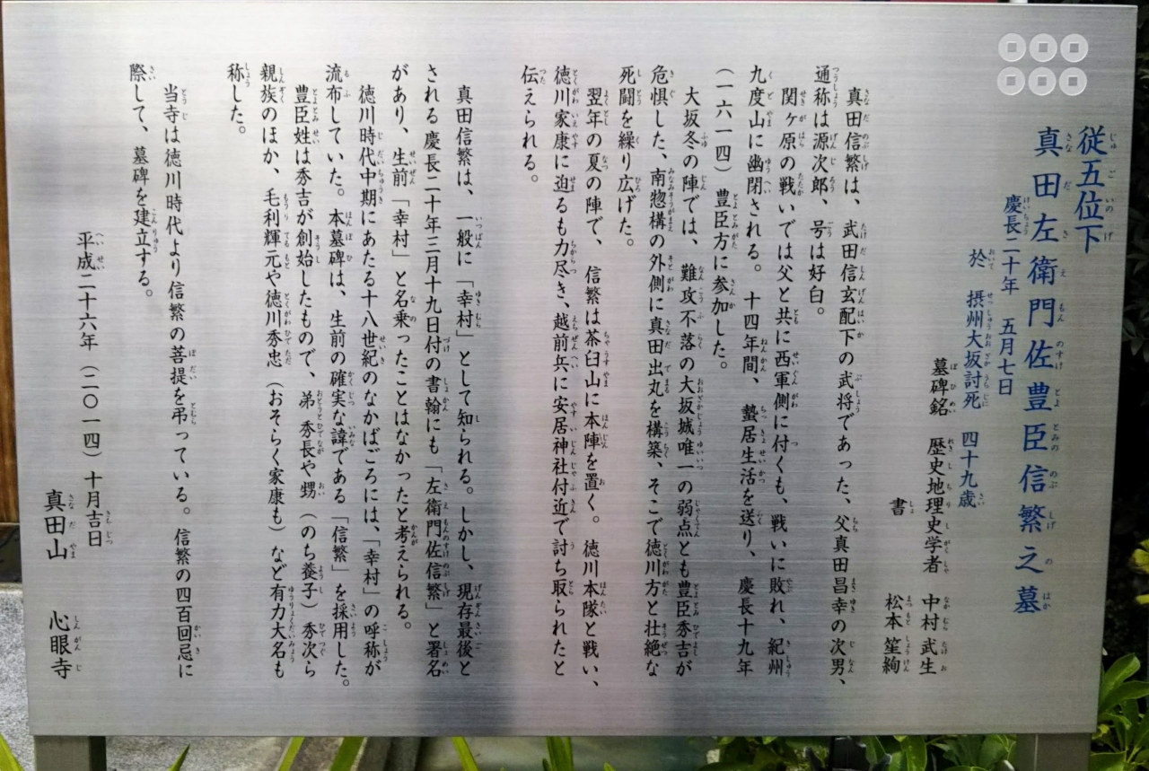 「真田左衛門佐豊臣信繁之墓」がある「心眼寺」