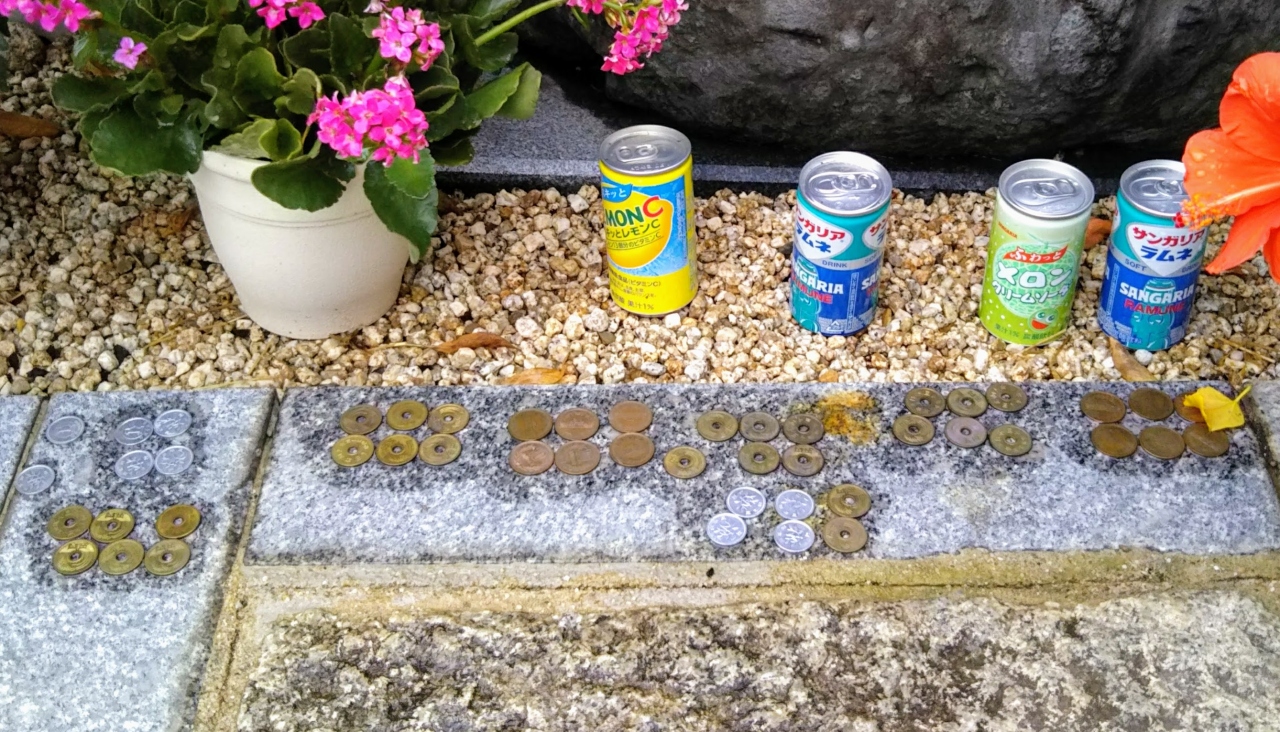 また、こじんまりとした境内には、2014年真田信繁400回忌に建立されたばかりの「真田左衛門佐豊臣信繁之墓」があり、硬貨を6枚並べて作る「六文銭」のお供えもありました。