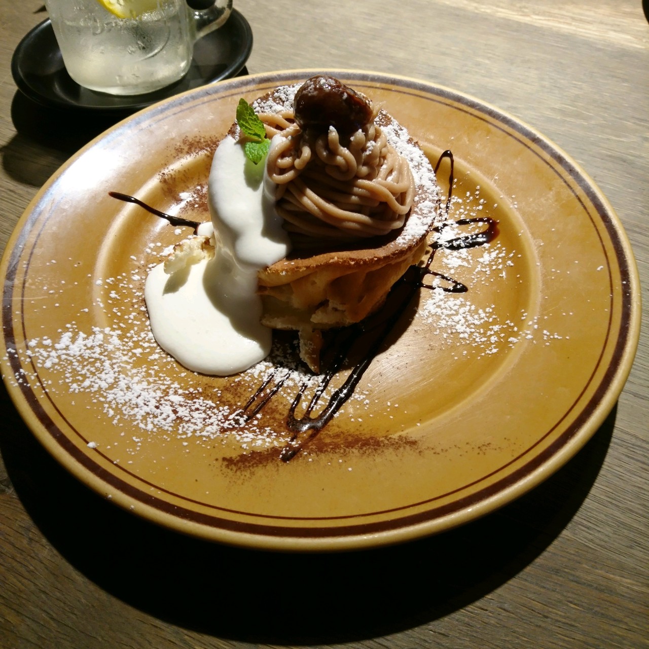 事前に調べて早い時間でもやっているのでこちらへ行きました。パンケーキは焼くのに20分かかりますが、その場で作り始めるのが見えるのでよかったです。モンブランパンケーキにしましたが、あっさりとしていて、おいしくいただげした。