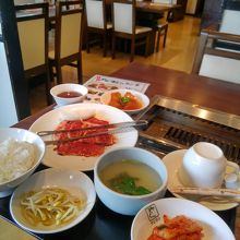 客引きの多い焼き肉屋さんを通りすぎて、ゆっくり看板を見て950円の焼き肉定食の看板を見て入った。