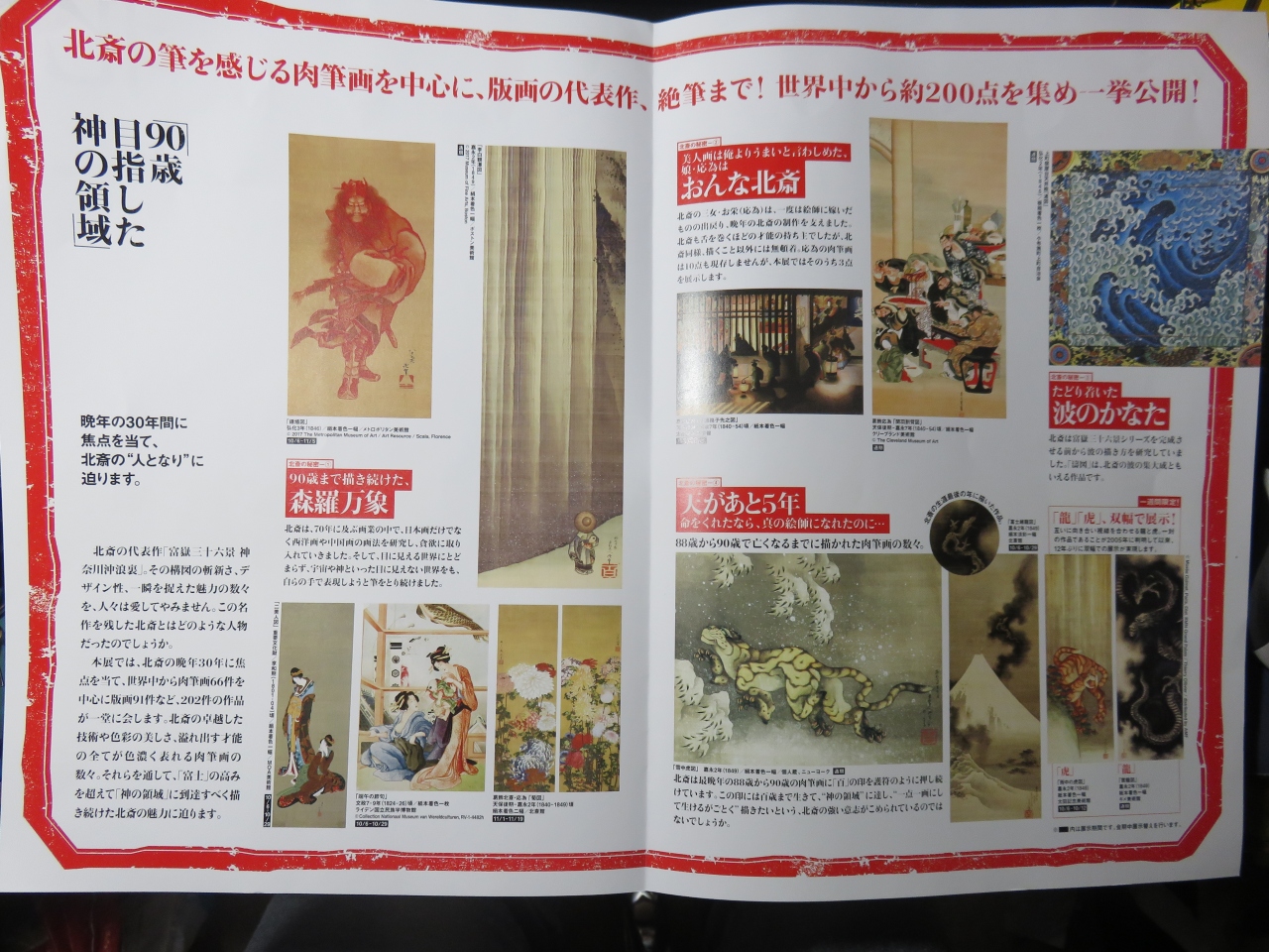 今回の展示内容は約半分を占める大英博物館の所蔵品だけでなく、世界各地からも借り出しており、国内からのものも多少はあり、まことに圧巻というしかない!北斎最晩年の作品もかなり集まっており、長野県の小布施町にある祭り屋台の絵も2枚、ちゃんと見れた!