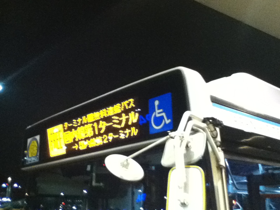 羽田空港ターミナル間無料連絡バスは国内線の第1、第2ターミナルの間を回るルートと、国際線ターミナルを加えた3つのターミナルの間を回るルートがある。国際線ターミナルから乗る場合は問題ないが、第1、第2から乗る場合は注意が必要である。今回乗った時は、外国人旅行者もかなり利用していた。お勧めの点は、3つのターミナル間を比較的容易に移動することができること、料金が無料であること、搭乗前に時間がある時に他のターミナルでの食事や買物などに利用できること、車内はあまり広くないが綺麗で小さな荷物なら持ち込めることである。