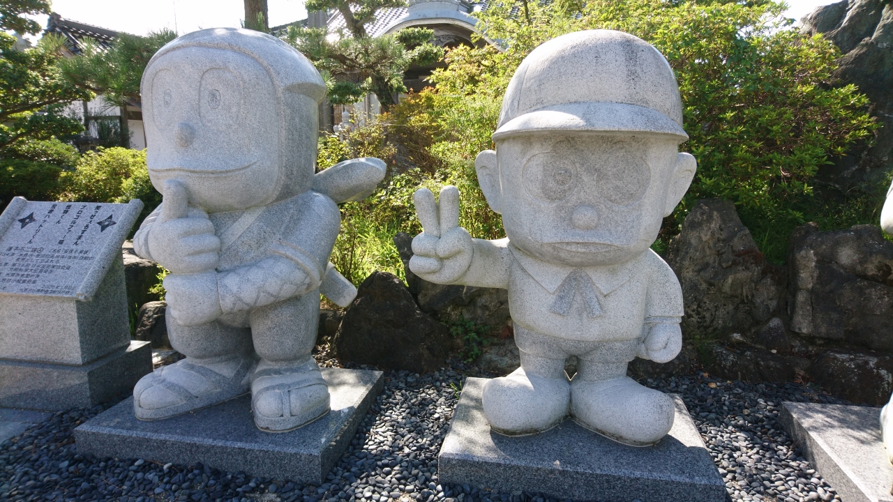 藤子不二雄Aさんの生家です。お父さんが第49代住職で、高岡市へ引っ越すまで、このお寺に住んでいました。少し道路から入った場所にありますが、山門をくぐると、忍者ハットリくん、怪物くん、喪黒福造、プロゴルファー猿の石造があるのですぐにわかります。氷見は、街ををあげて藤子不二雄さんの功績をたたえていて、昔見た漫画の世界が町中にあり夢のようなところでした。