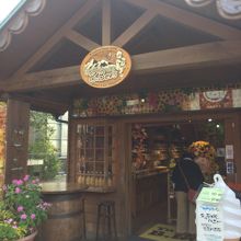 ログハウス風の外観が可愛いはちみつ屋さん。
