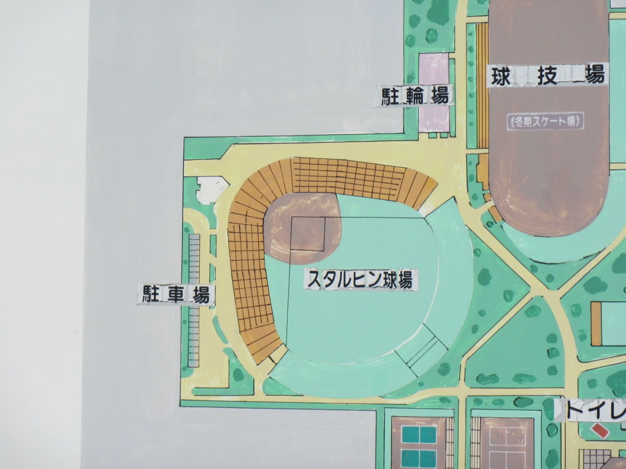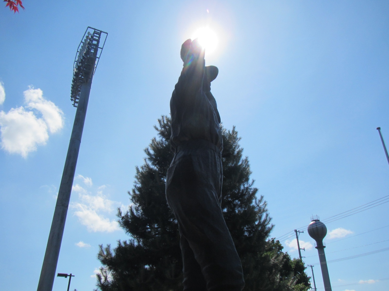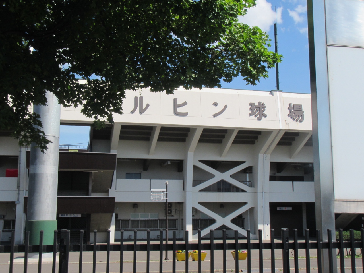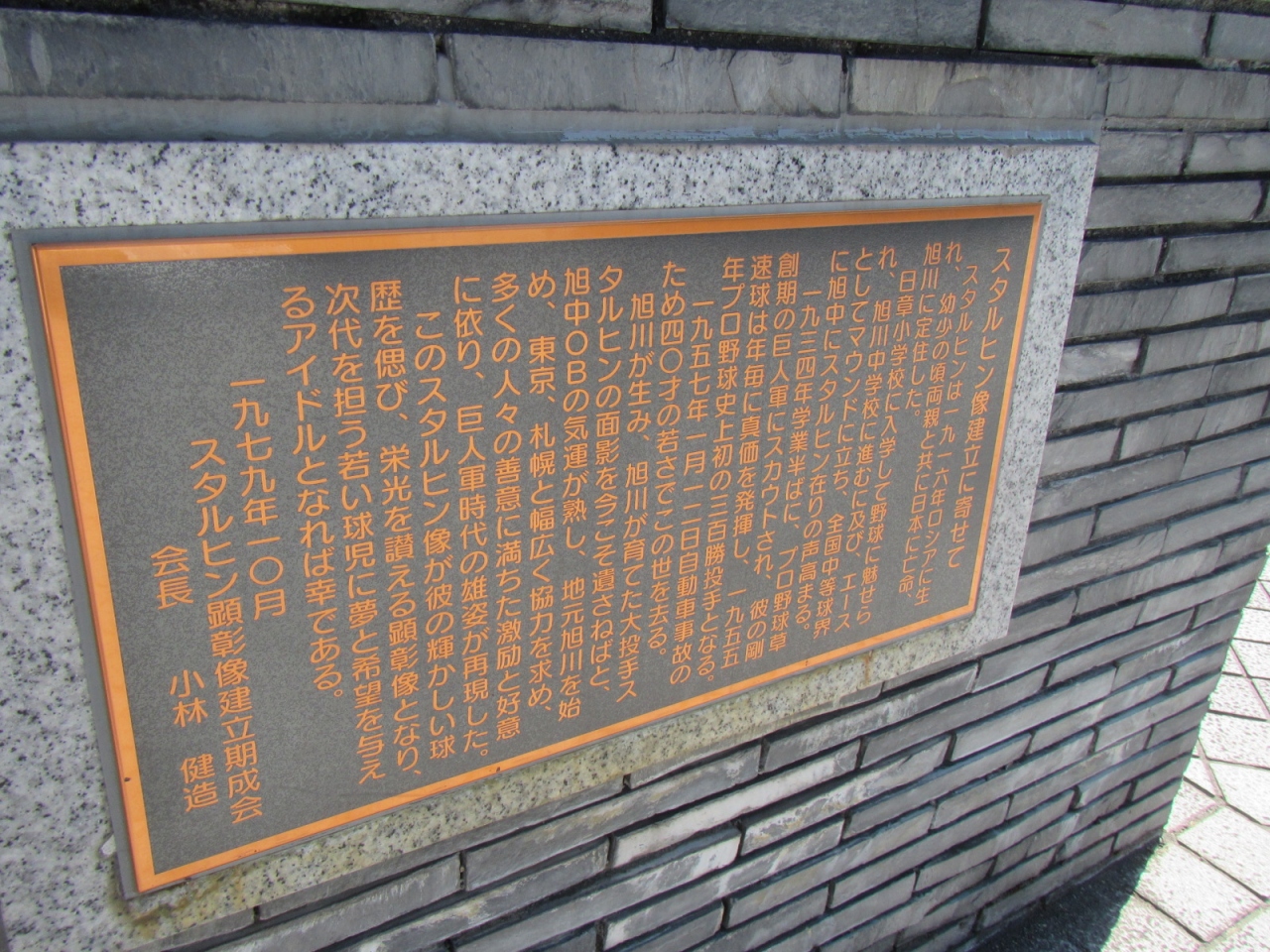 国道40号沿い、自衛隊向いにスタルヒン球場があり、像は道路沿い、球場建物の前にありました。