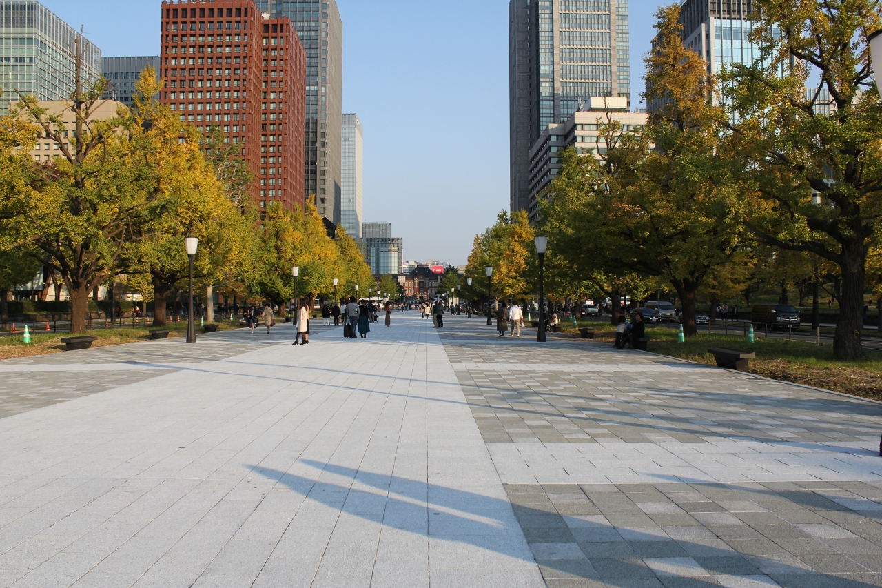 11月の三連休の最終日、東京駅周辺を散策しました。当日はトランプカメリカ大統領の訪日だったこともあり、周辺は警察関係者ですごいことになっていました。東京駅の丸の内口から皇居方面に向かって進むと、左右にお堀があり、それでも進むと幸通りです