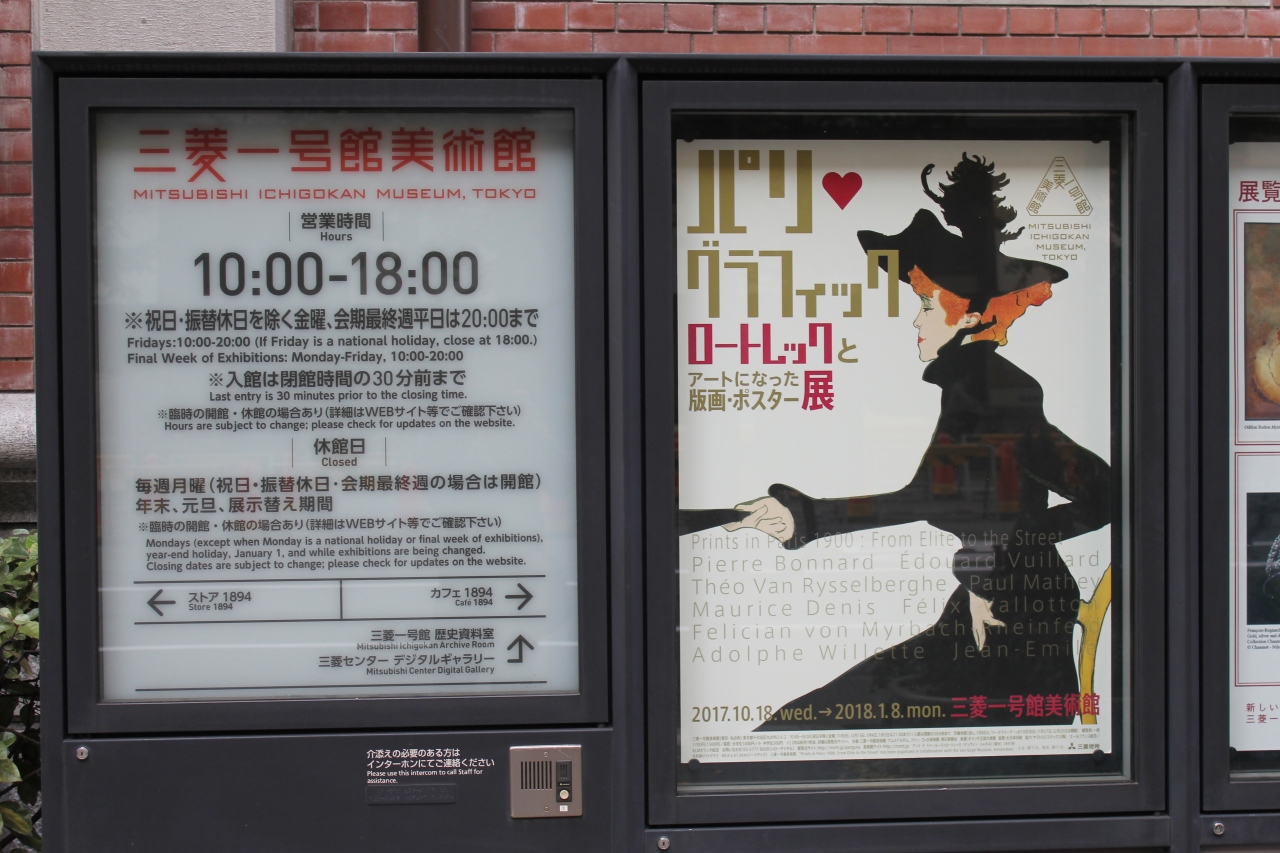 11月の三連休の最終日、東京駅周辺を散策しました。まずは、丸の内口で降りてビル周辺を散策。ほどなく歩くと目に入ったのが三菱グループの美術館。ビルの1階にありました。開催中の展覧会としてパリーグラフィックをやってました