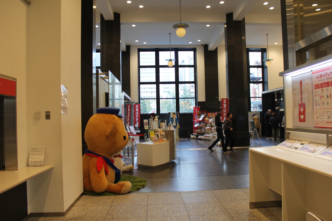11月の三連休の最終日、一人で東京駅周辺を散策しました。まず、東京駅の丸の内口からでました。駅周辺を歩いていると、休日なのに人の出入りの激しいビルが。覗いてみると郵政省が経営していると思われるビルが。1階には郵便局が併設されてました。