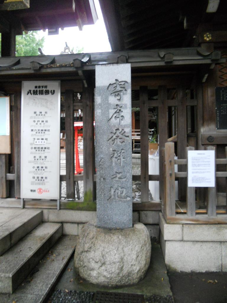 なぜか神社の境内に喫煙所があり、喫煙者のたまり場のようになっており、ちょっとびっくりしましたが、「寄席発祥の地碑」はしっかり見学&撮影(笑)。