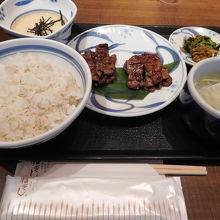 平日のランチで利用しました。雨の日だったので、傘を畳んで入店すると、店員さんがさっと傘袋を用意して頂けました。店内は、カウンター席とテーブル席があり、カウンター席でも1つ席を空けて座れるように案内がされていました。薄切りの赤たんが12切付いた「ランチがんこセット」を注文しましたが、薄切りでも十分満足でした。麦ごはんと、とろろも美味しかったです。
