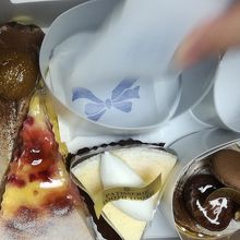 今がシーズンのモンブランや栗のタルト、ラズベリーのチーズケーキ等を購入しました。