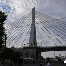 青森駅をまたぐようにかかる大きな橋。デザイン性を感じ、青森港に溶け込んだシンボルのような印象を受ける風景。歩行者も橋の上に出ることができ、青森湾の風景を一望することができ絶景。横浜ベイブリッジに名前が似ていると思ったが、これを参考にして名づけられたようです。