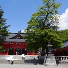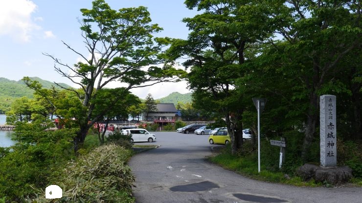 赤城山中腹にある神社。大沼のほとりにあって趣のある風景をつくる。赤が目を引く建物は参拝客でにぎわっていた。赤城山登山を目的としたが、バス降車後登山口までのルート上にあったので、大沼を眺めつつ神社の境内を経由して登山口に向かった。