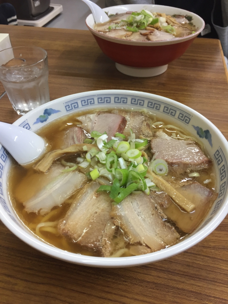 坂内がめっちゃ混みで、並ぶ覚悟持てず、隣の松食堂に並び30分ぐらいで入店!ラーメン到着するやいなや、前金制!つりのないようにといわれ、やや、なんか上から目線なオバチャン店員!肝心のスープはんー、まこと食堂のインパクト強すぎて、あっさりが物足りないって感じでしたが、チャーシューは味がしみてて美味しかったです😊