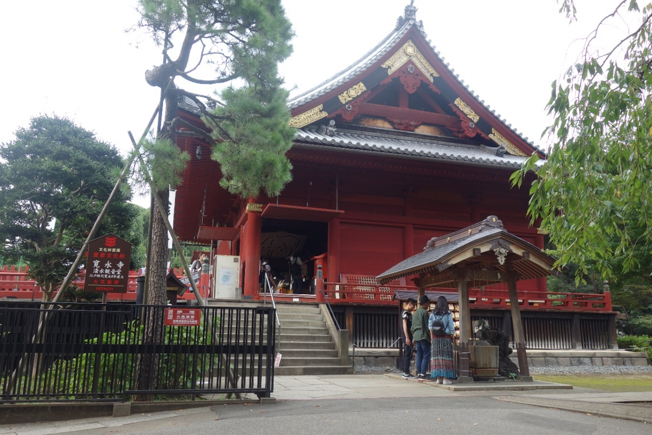 上野公園を訪れた際に立ち寄りました。舞台造りが特徴のお堂で、京都東山の清水観音堂を模してあるのだそうです。舞台の前には有名な月の松が植えられ、舞台と共に美しい姿を見せていました。9月には人形供養が行われます。