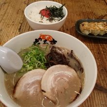 ラーメンと明太子ご飯のセットを頂きました。ラーメン、豚骨臭がきつくて私にはちょっと苦手でした…(笑)