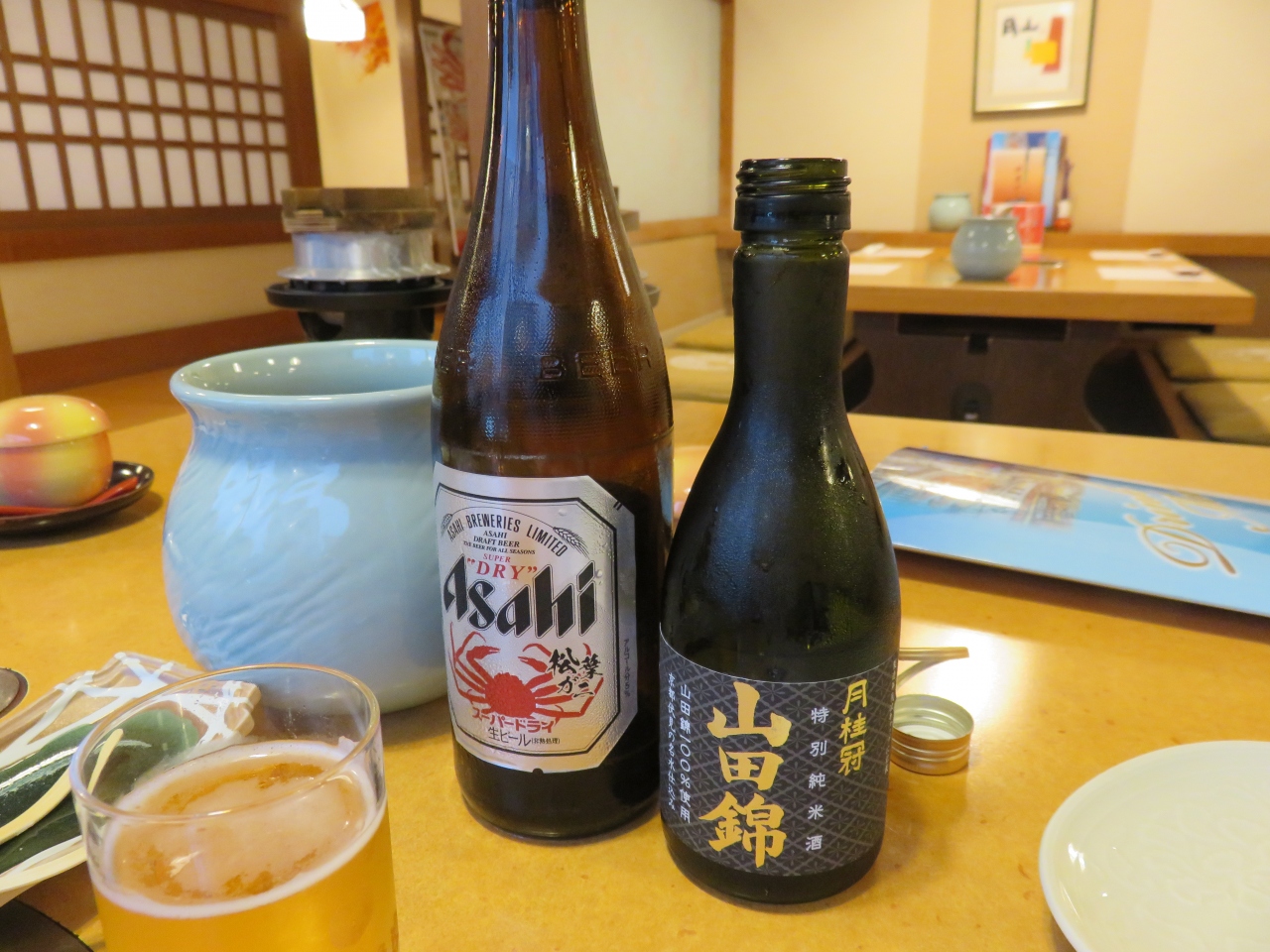 「かに道楽 道頓堀本店」の予約が3:50に取れたので、入店。昼のコース、3500円を注文。ビールと日本酒も追加。日本酒はおすすめというので、月桂冠の大吟醸特別純米酒山田錦を頼んだが、あまり好みではなかった。京都の日本酒はあれこれ試してはきたが、私の評価は低い。