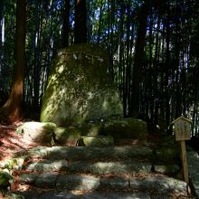 杉木立の中に苔生した岩が祀られてあり、古式ゆかしい雰囲気を感じることができる。