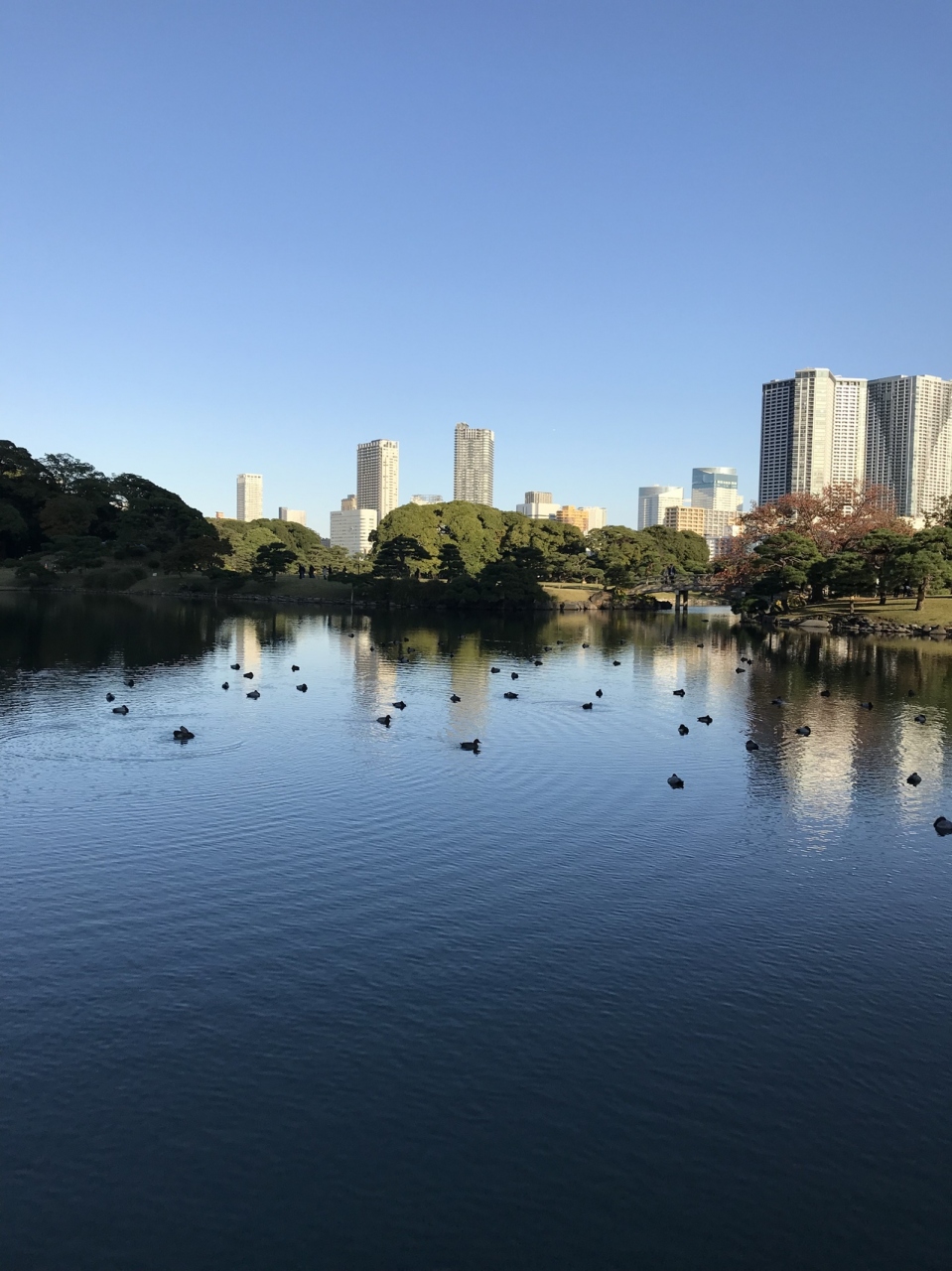 新橋、汐留から、歩いて5から10分のところにある落ち着いた庭園です。池に水鳥がいたり、300年の松があったり、ゆっくり、歩いて散策できます。残念ながら、今の時期は、お花は、ほとんど咲いていません。水上バスで、浅草やお台場、両国などへ行けます。