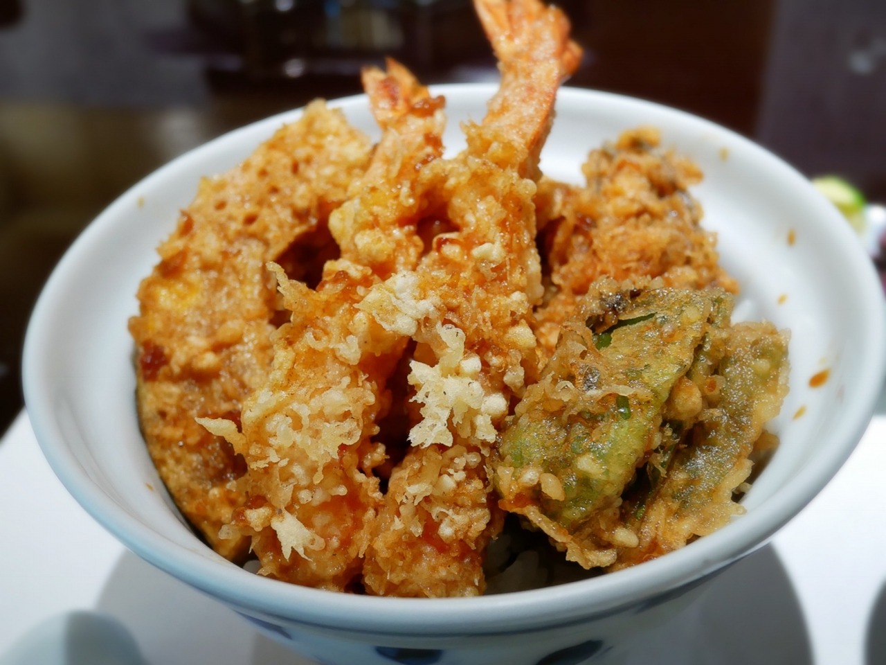 タレがたっぷりかかった江戸前天丼が提供されました。