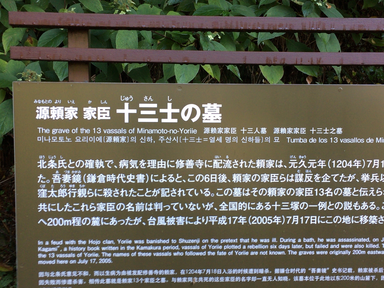 標識どおりの道順で十三士の墓を探して、小高い山を登り始めたら源義経像(標高??m)までたどり着きました。