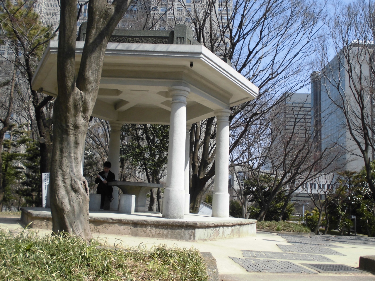 東京都庁の麓にある公園・新宿中央公園。その中にあります。新宿副都心がかつて浄水場だったということは比較的知られていることですが、それを記念する六角堂があったことはあまり知られていません。小高い丘の上にあるので見晴らしもいいです。