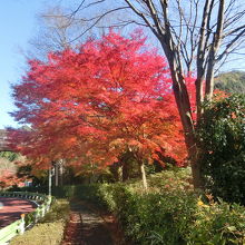 紅葉も見ごろで、ところどころに真っ赤なモミジが。