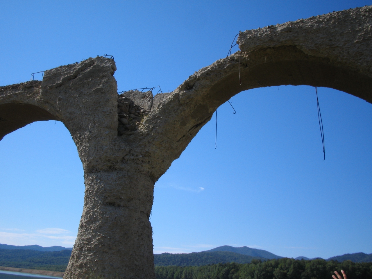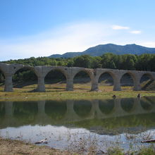 ユースホステルが主催したタウシュベツ橋梁ツアーに参加しました。お天気にも恵まれ、青空と山と橋梁がマッチして素敵な風景でした。ここにいるのは私達ツアー客7人だけ。今にも崩落しそうな部分もありましたが、時の流れを感じるとともにもう少し頑張ってほしいという思いでした。