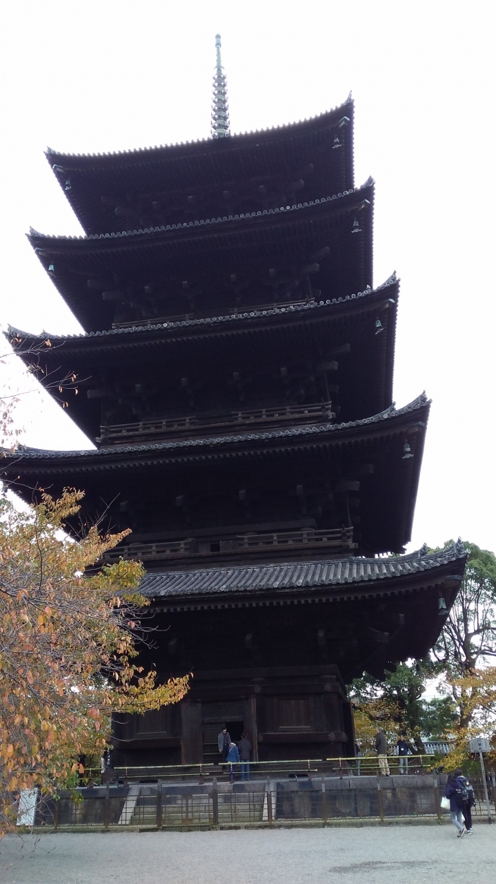 昨年に続き東寺五重塔を見に行ってきました。今回は五重塔も良かったんですが、紅葉がきれいですごく良かったです。京都駅からは少し歩くので、今回はタクシー利用。五重塔は遠くから見ても、近くで見ても立派です。京都タワーから見たその姿も立派でした。