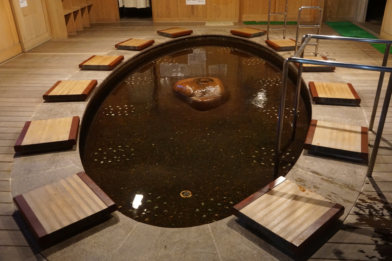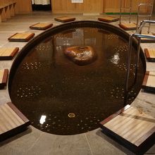 ちょっとした建物の板敷きの間に足湯の温泉が据えられています