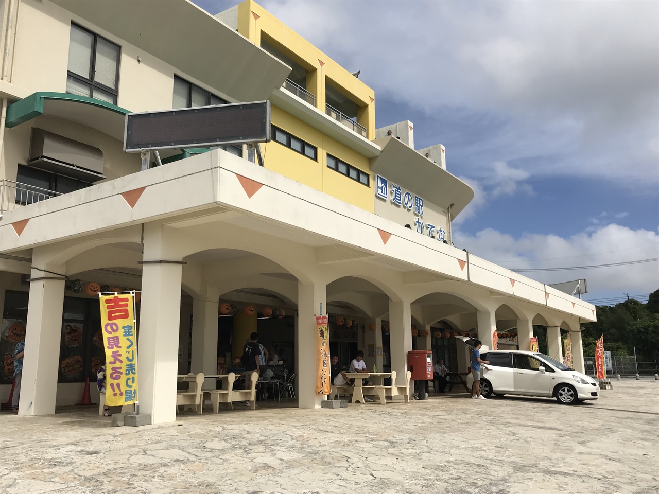 那覇からなら58号線を名護方面に向かうと嘉手納にロータリーがあるので、そこを右(沖縄市方面)に進むと左側に見えてきます。