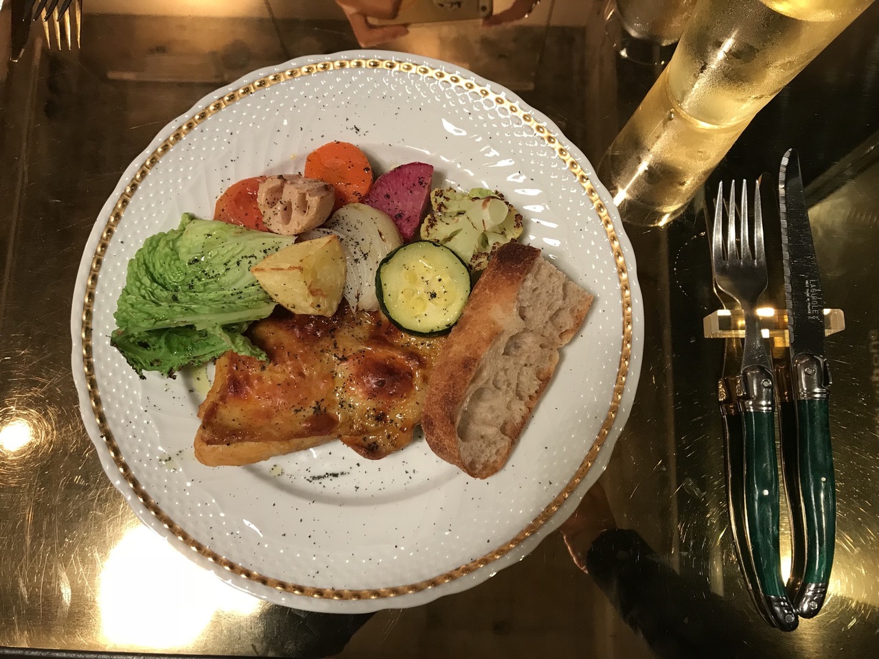 潔いですね。野菜も沢山付け合わせとして置かれ、こんな美しいタンドリーチキンは初めてでした。フランス語でセクションドール=黄金比らしいです。