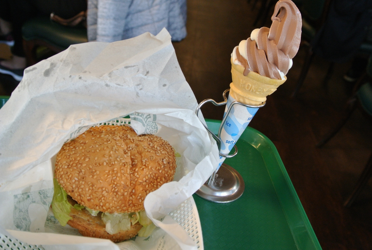 おすすめはチャーニーズチキンバーガーとミックスソフトクリームです。ソフトクリームは220円ですが、8日は半額のようです。