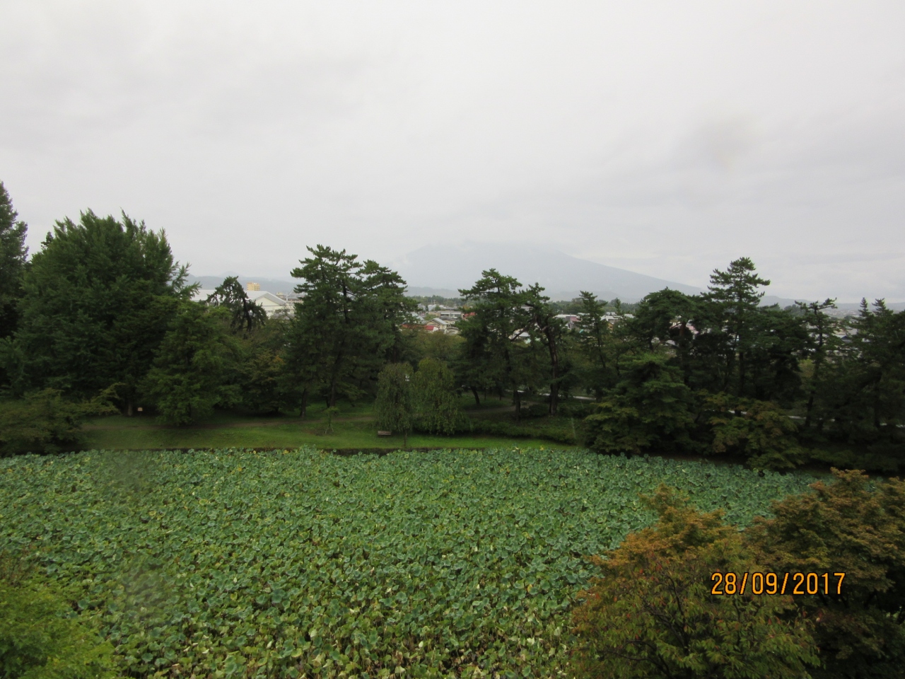 津軽富士と呼ばれるだけあって五能線の鯵ヶ沢から内陸に入ってから右手に見え、その後鶴の舞橋⇒藤田庭園⇒弘前城⇒黒石駅とその均整のとれた美しい姿を堪能した。