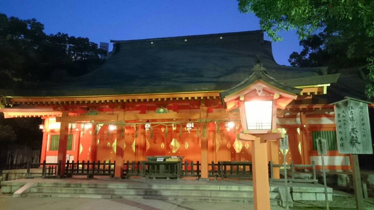 夜のライトアップされた神社は神秘的でとても美しかったです。