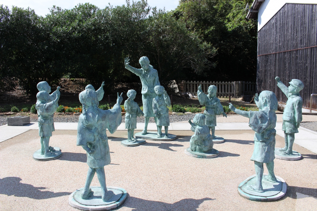 外に出たら二十四の瞳像~更に進んで行くと、ロケに使用された木造校舎がありました。