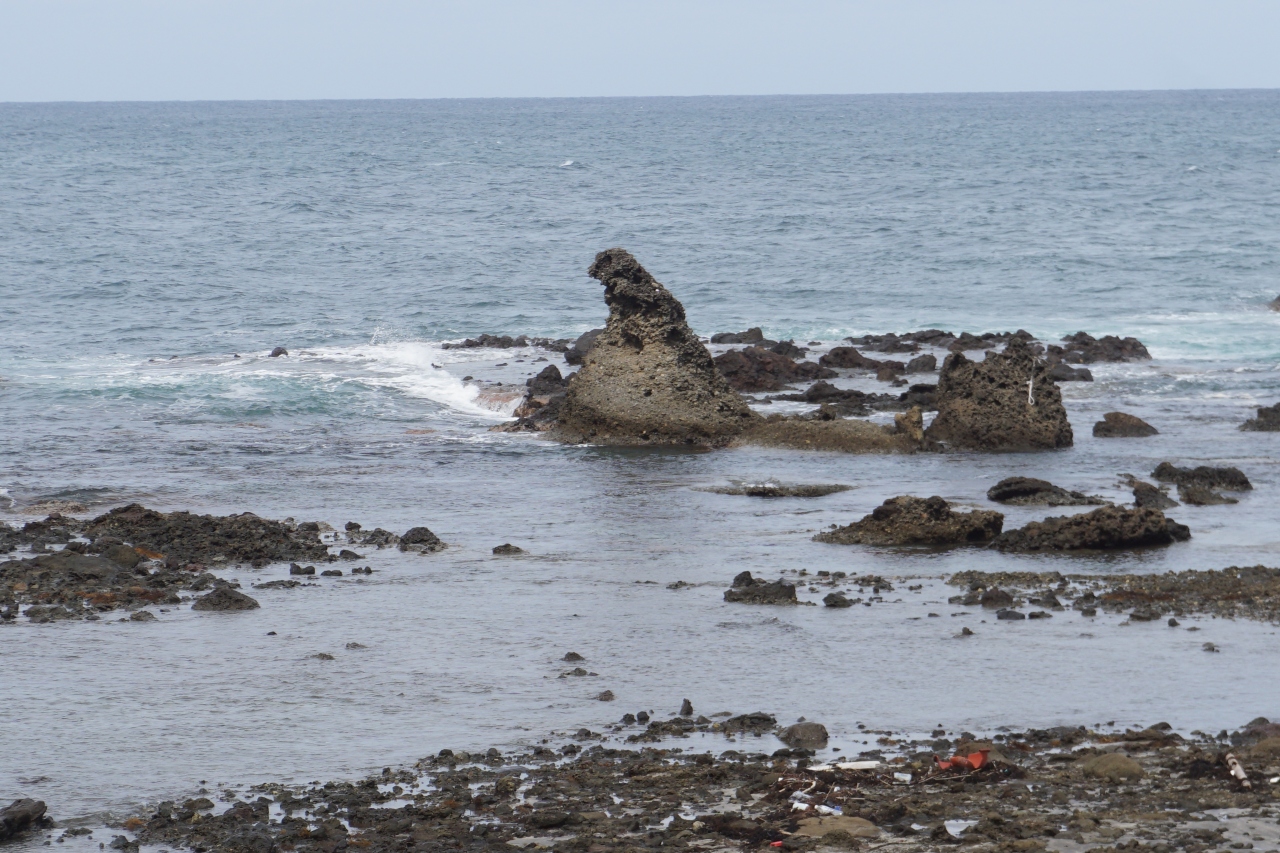 この辺りにゴジラ岩があるはずなんだけどなあと思いながら探しますが、よくわからない。結局、近所の人に聞いてやっと分かりました。道路脇に看板もありますが、これでは目立たないですね。そして、ゴジラ岩の方もかなり小っちゃい。しかし、確かにゴジラが歩く姿をしていて、意外にリアルです。