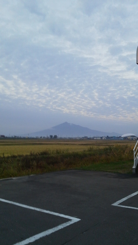 津軽の人にコヨナク愛されている山です。津軽平野どこからでも眺めることが出来、津軽地方のシンボルとなっています。コニーデ型の火山で、姿見が良く、津軽富士と愛称されています。今回、金木方面から眺めることができました。イチョウの葉のような綺麗な形を拝むことが出来ました。