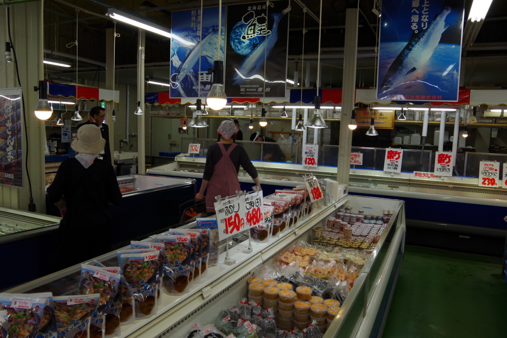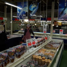 店内には所狭しと海産物や海産加工品が並んでいます。駅前にはカニの直売場はあるものの、こういった色々な種類の海産物を売っているところはほかにないので、観光のついでに立ち寄って買い物するのに重宝できると思います。
