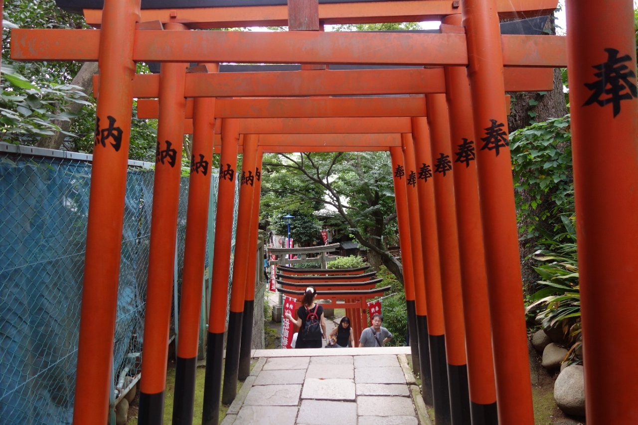 上野公園から石の鳥居をくぐると赤いたくさんの鳥居が見えてきます。その鳥居をくぐりながら石段や坂道を降りていくと花園稲荷神社へアクセス出来、この道が稲荷坂となっています。石段や朱色の鳥居で大変風情ある場所です。