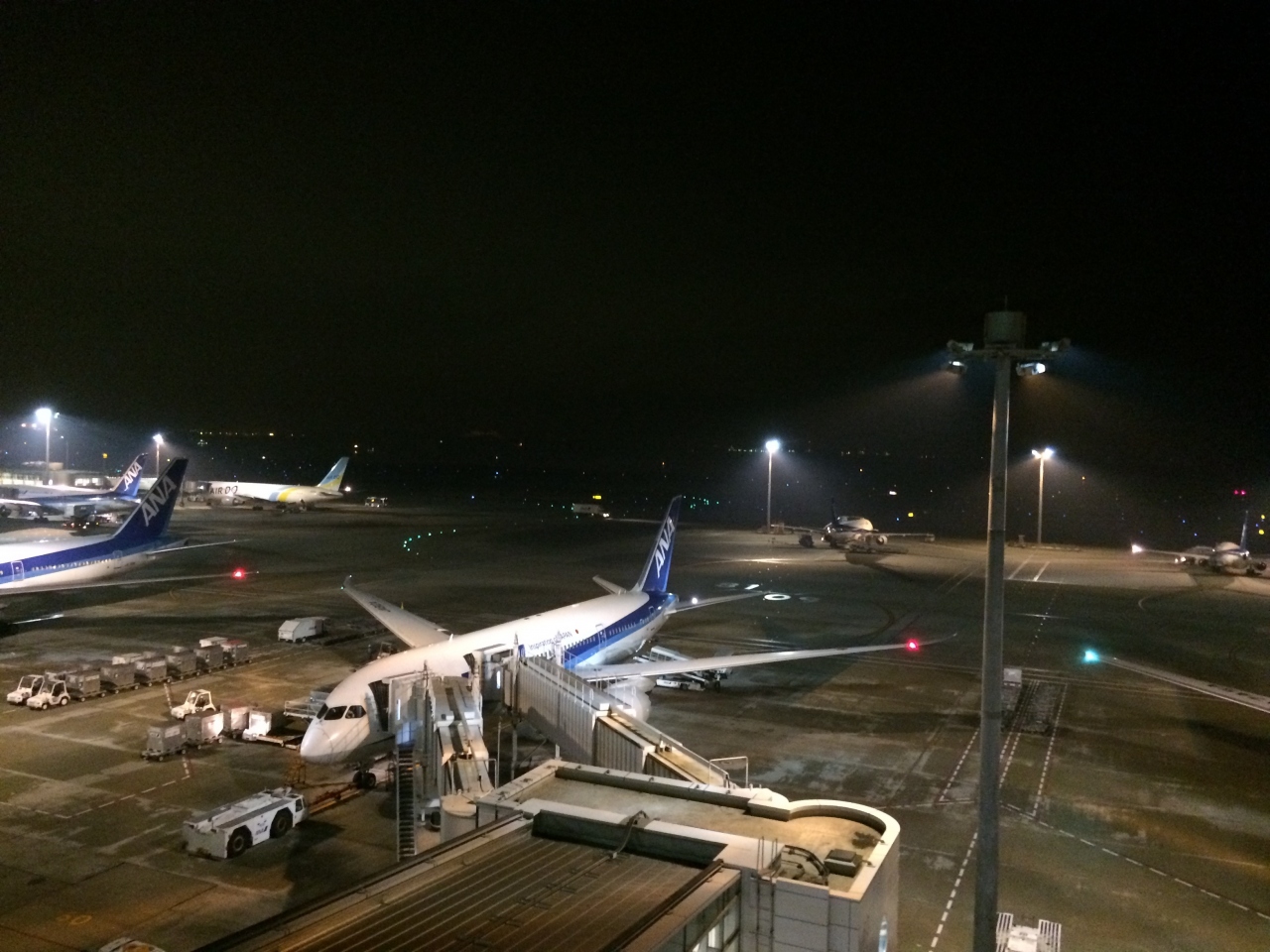 羽田空港第2ターミナルにある展望台。実に良く飛行機が見えますし、なんといってもデザインが非常にいい。青を基調とした床の光が幻想的な雰囲気にさせてくれます。それでいて、飛行機の鑑賞や撮影には一切支障がありません。
