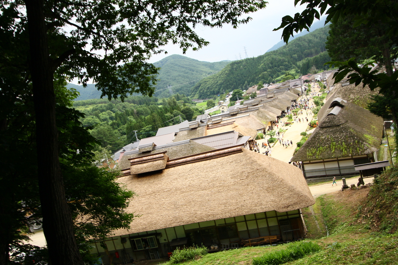 江戸時代から残り続ける、茅葺屋根の民家が並ぶ宿場町です。