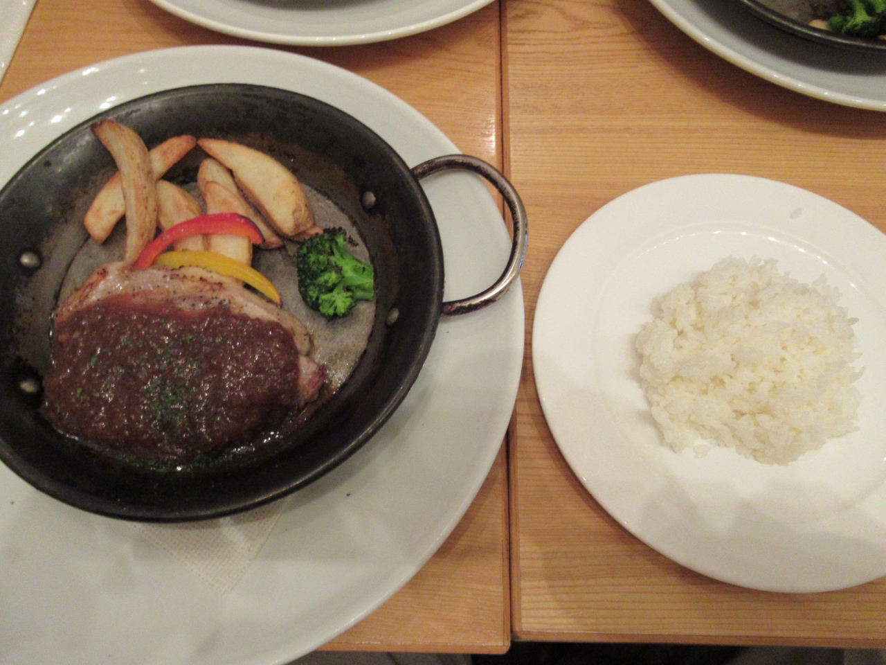 オニオンソースは美味しく、またサラダは量があり良かったが、メインの芋豚が噛み応えがありいささか難儀だった。