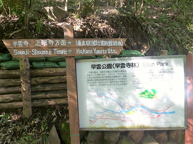 箱根の紅葉を観るために先ずは`早雲寺(桜と紅葉で名所)`に着いたのですが、11月上旬で紅葉はもう少しでした。で、念のため(確認?) 、裏手の[早雲公園]に行ってみました。やはり紅葉が未だでした。早雲公園ではなく(`公園の遊技台等`は皆無でしたので)、`神奈川県認定[早雲寺林]`が正しいと! 10月に降った大雨で入り口はロープで立入禁止でしたので、道沿いに古樹齢を見て散策しました。
